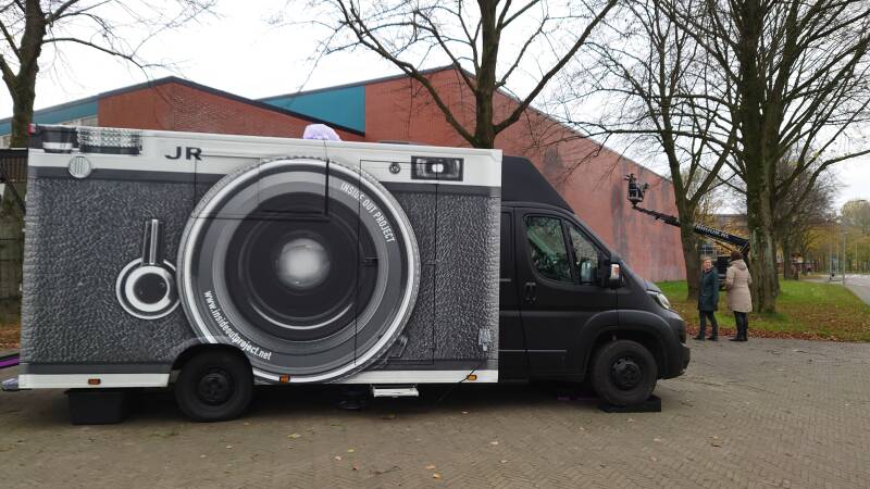De mobiele fotostudio van JR: Inside Out komt naar Groningen. In deze studio kan iedereen die langskomt een portretfoto laten maken die ter plekke op groot posterformaat wordt afgedrukt. Een deel van de foto’s wordt op de buitenmuren van het Groninger Museum geplakt. Andere portretten zijn te zien in straatexposities in Stad en Ommeland.